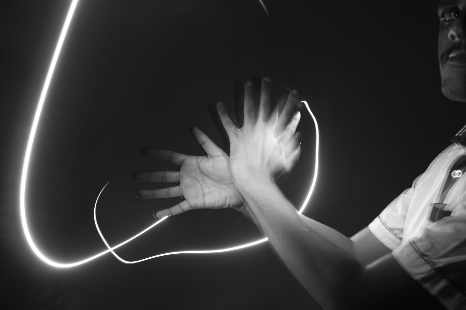 Titled “The Real Failure is Depriving Your Deaf Child’s True Sign Language,” this powerful black-and-white photograph captures the expressive motion of hands illuminated by light trails. The image symbolizes communication, identity, and the inner strength of the deaf community. It serves as a reminder that sign language is not just a means of expression — it is a lifeline to connection, culture, and belonging.