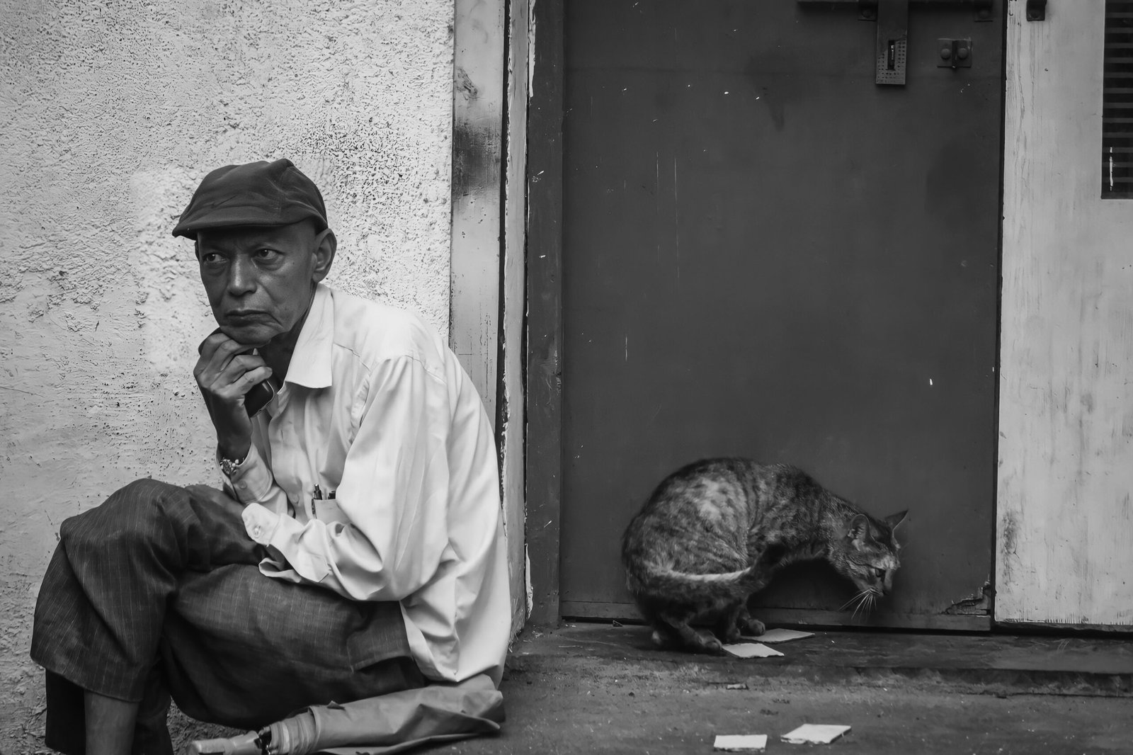 Titled “Man and His Soul,” this black-and-white photograph beautifully captures the quiet companionship between a man and his cat. The image radiates warmth and stillness, reflecting a deep emotional bond that transcends words — a silent dialogue of love and connection.