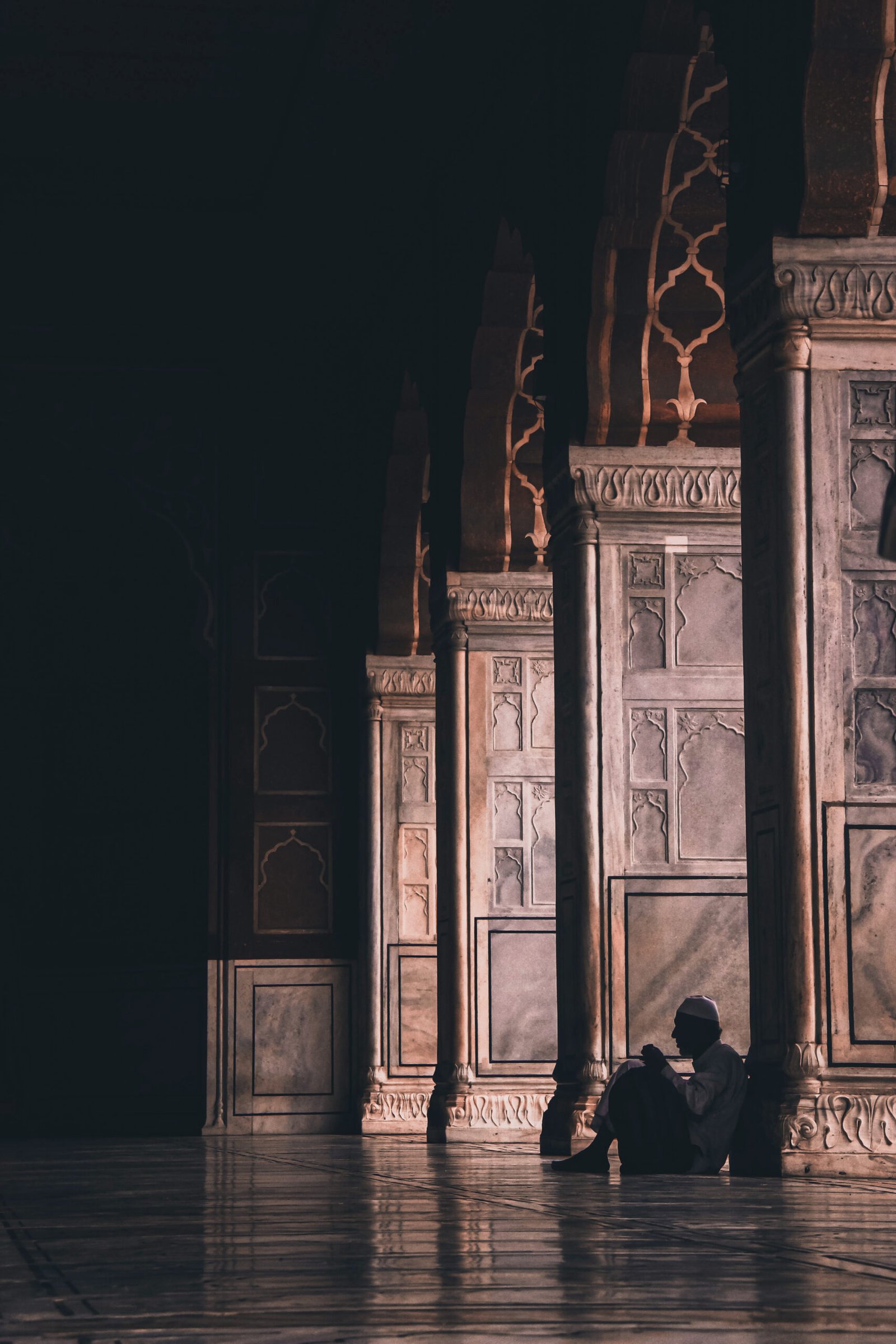 Titled “Pillars of Faith,” this photograph was taken on December 24, 2022, at Jama Masjid, New Delhi. The image captures a solitary figure seated against the grand marble pillars, bathed in soft, filtered light. It beautifully portrays serenity and contemplation within a sacred space, symbolizing how faith provides both